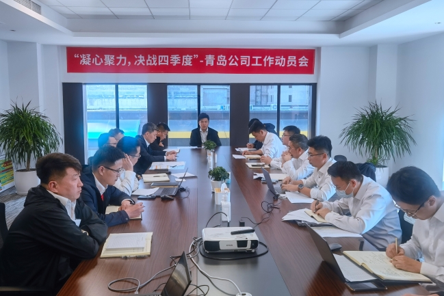 10月8日,青岛公司召开“凝心聚力,决战四季度”工作动员会,旨在动员全体干部职工统一思想、凝聚力量、攻坚克难,全力完成年度收官工作。公司领导班子成员及各部门负责人参加会议,总经理才锐主持会议。